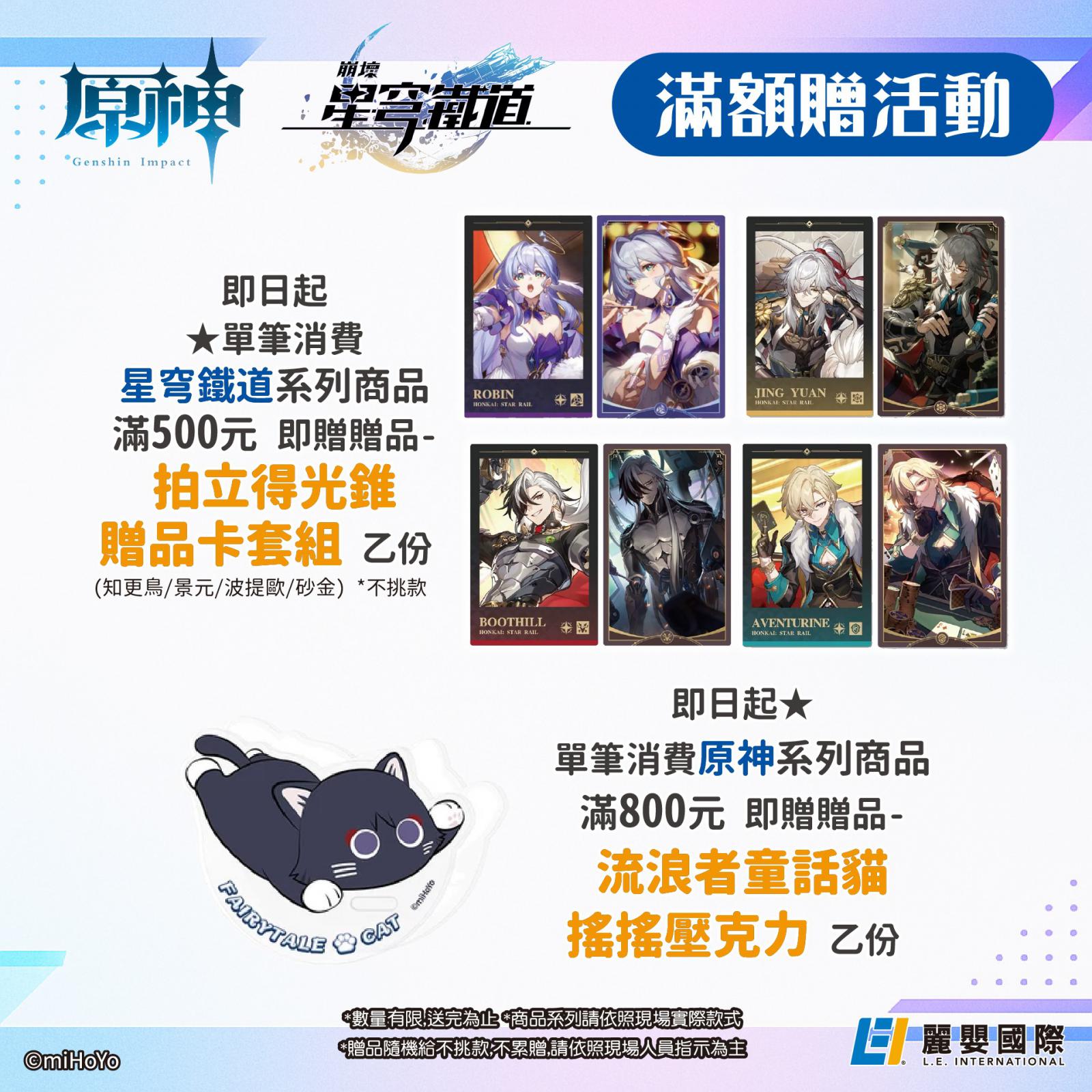 原神、崩壞星穹鐵道、絕區零、艾利同學及魔道祖師,各種活動滿額禮!!