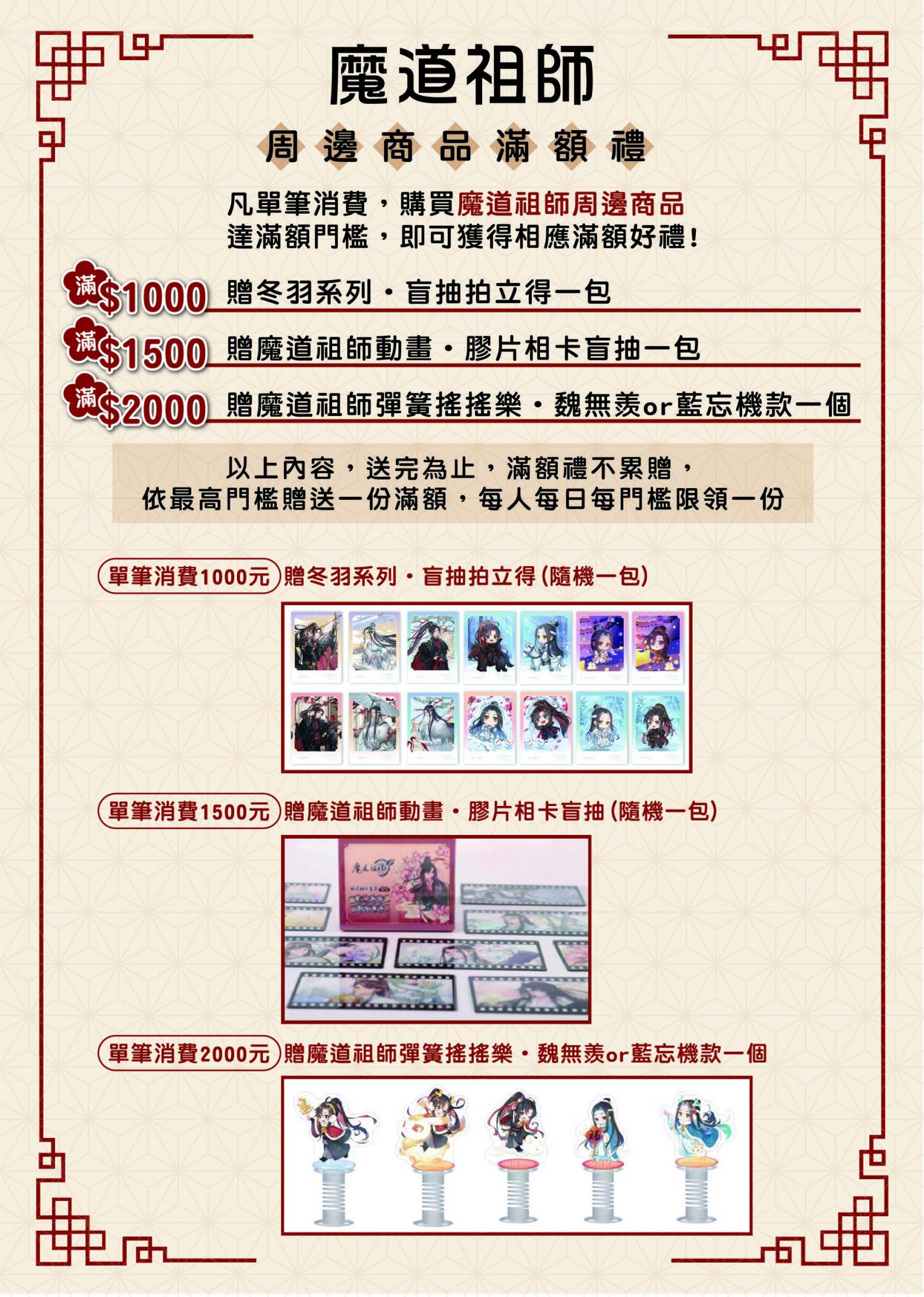 - 滿 1,500 元|贈 魔道祖師動畫・膠片相卡盲抽 1 包