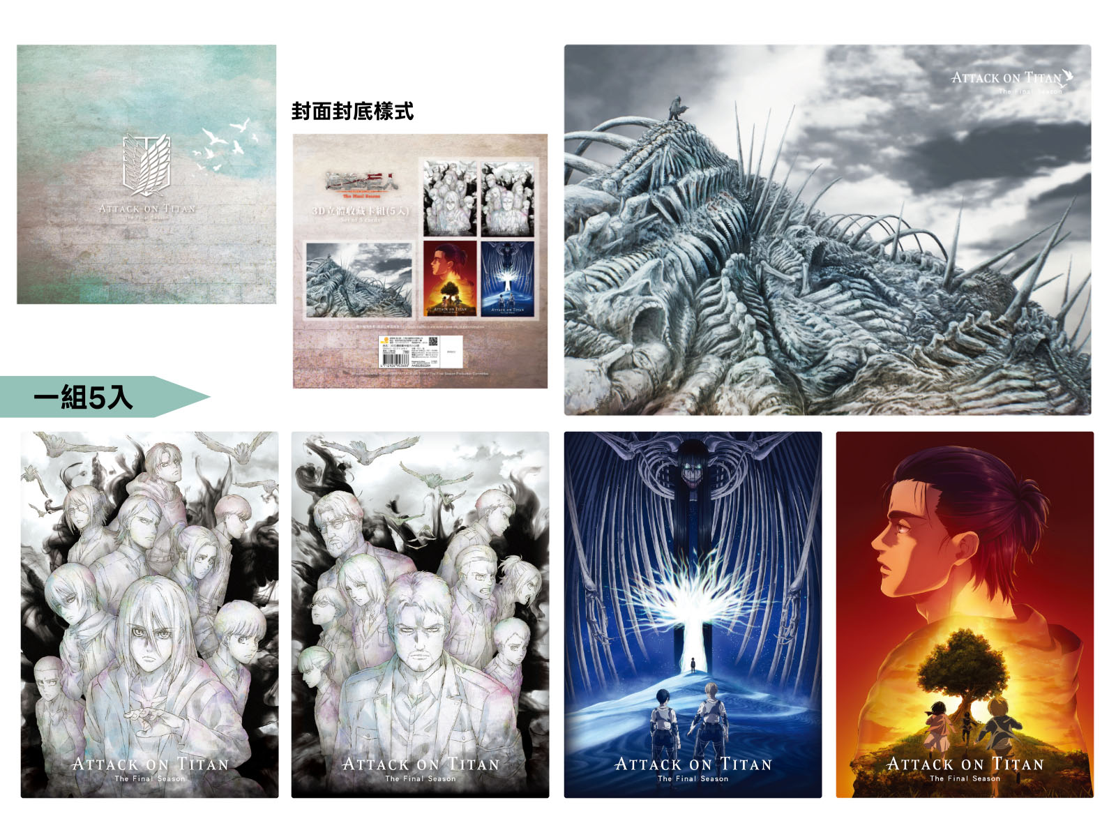 《進擊的巨人》 3D立體收藏卡組(一組5入) NT$980 尺寸:W15.5×H22cm