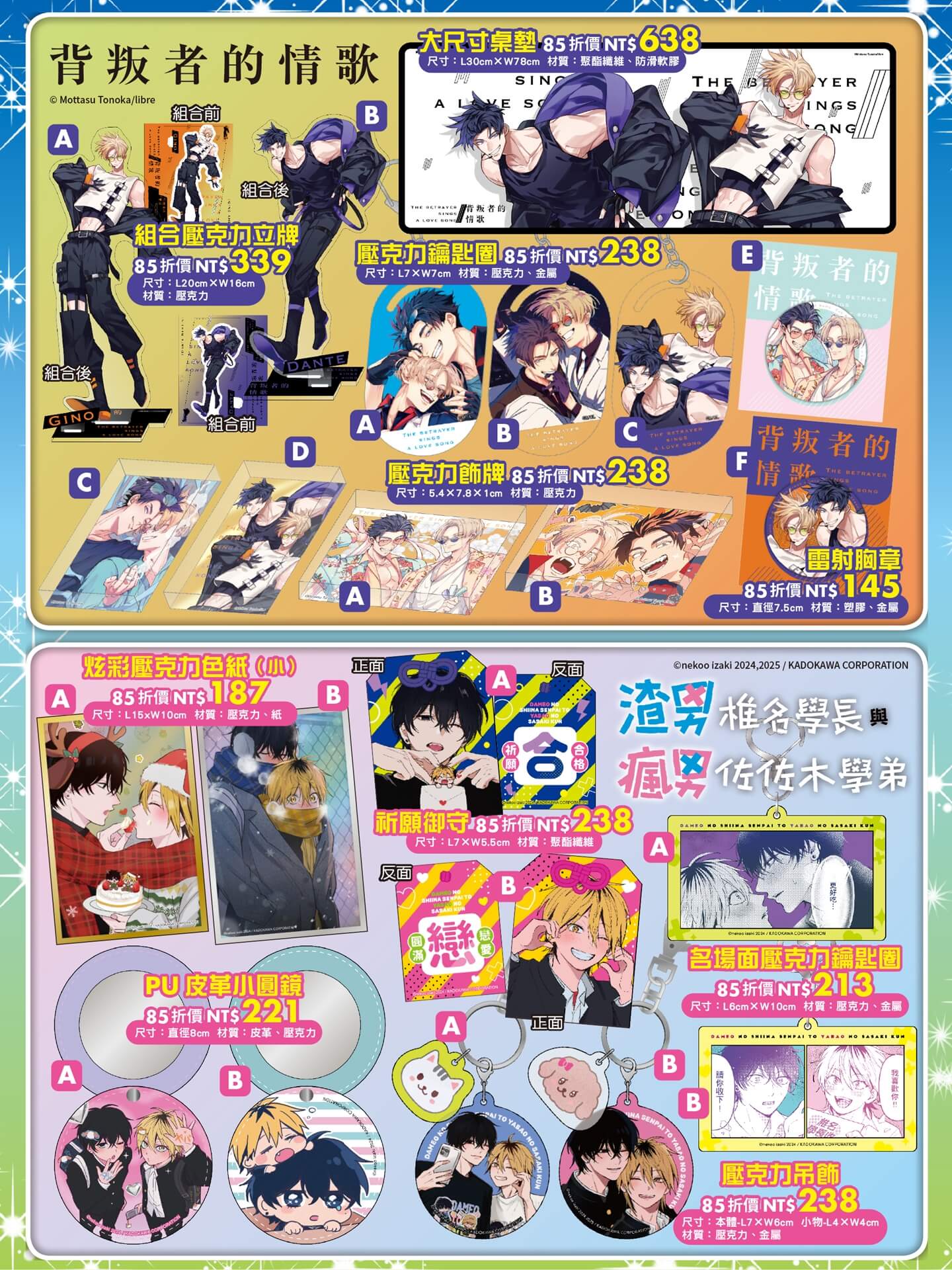 台灣角川2026台北國際動漫節【首賣精品】《背叛者的情歌(原作)》、《渣男椎名學長與瘋男佐佐木學弟(原作)》,總共22款