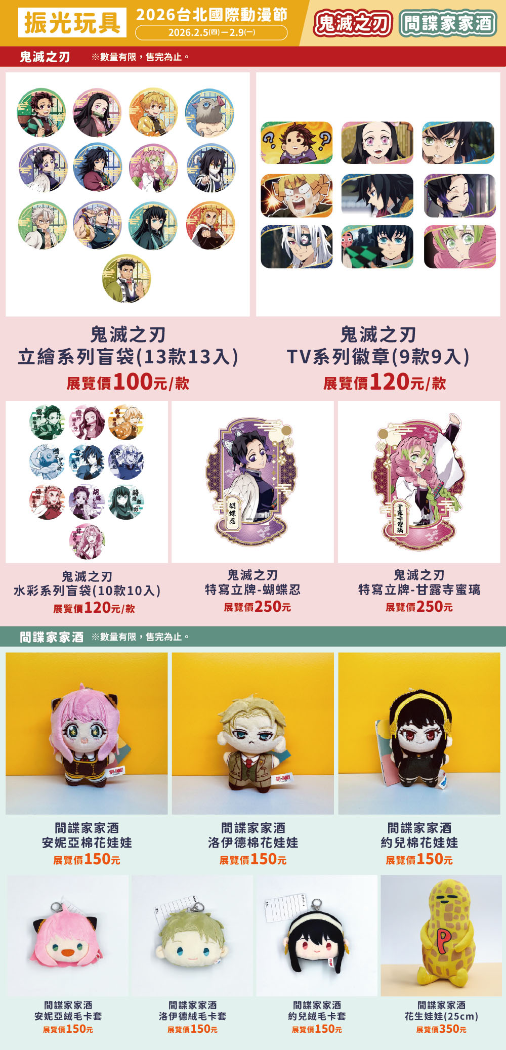 振光玩具本次重磅集結多部超人氣作品,推出多款官方授權、展場限定的角色周邊商品,從徽章、立牌、吊飾到絨毛娃娃與收藏卡片,全面滿足粉絲的收藏慾望。