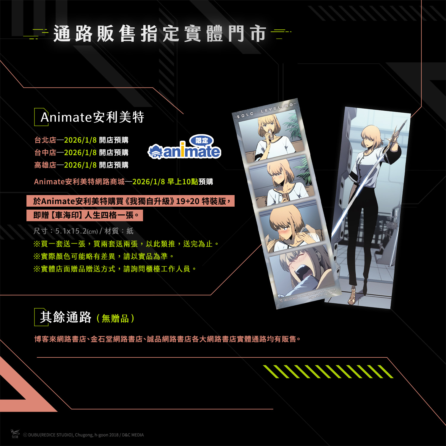 ▪️指定門市購買《我獨自升級》19+20 特裝版,贈▶【車海印】人生四格一張。門市▶Animate安利美特台北店/台中店/高雄店 #2026年1月8日開店預購