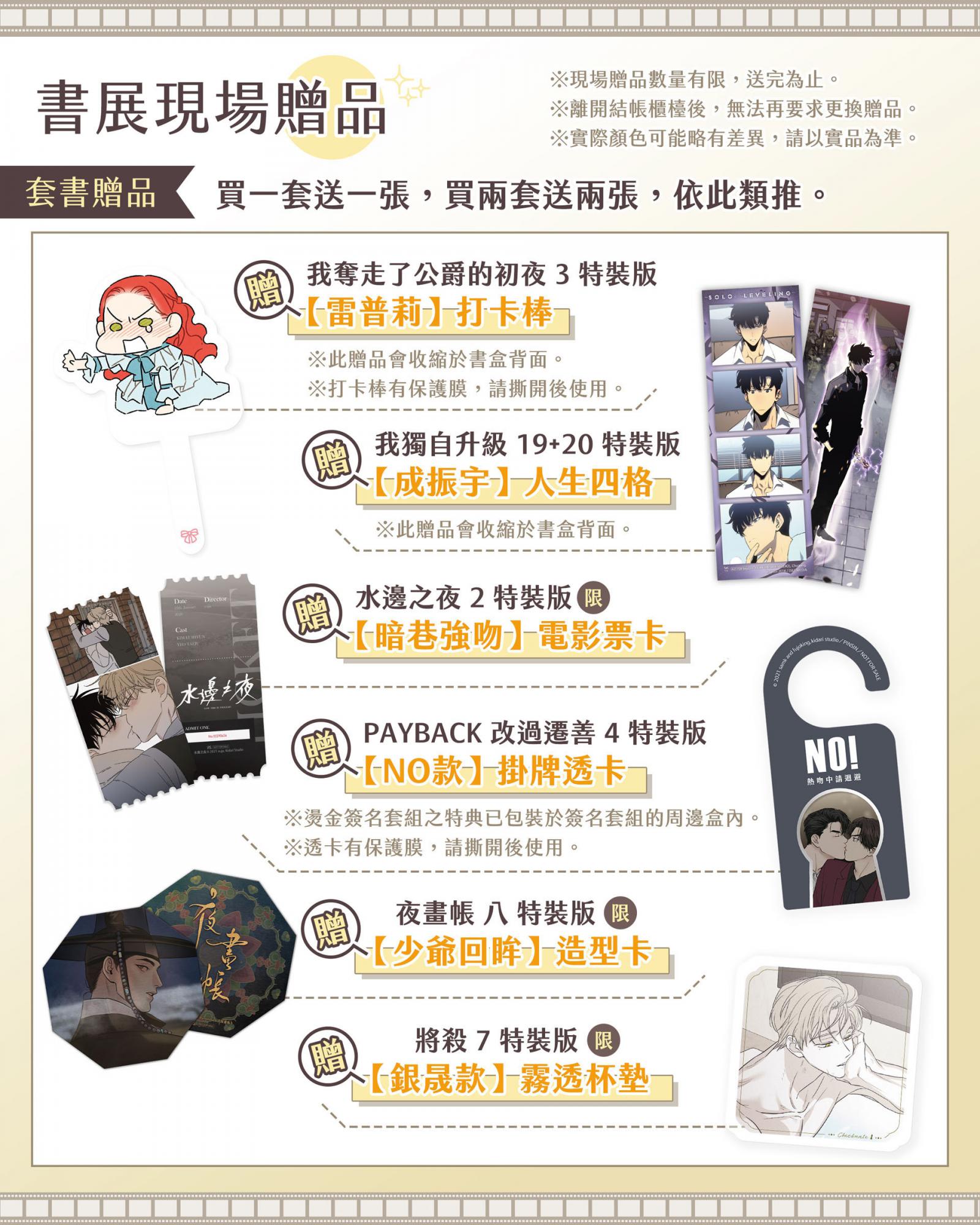(現場販售之燙金簽名套組不予累計在滿額贈金額中,亦不包含簽名會抽選資格)