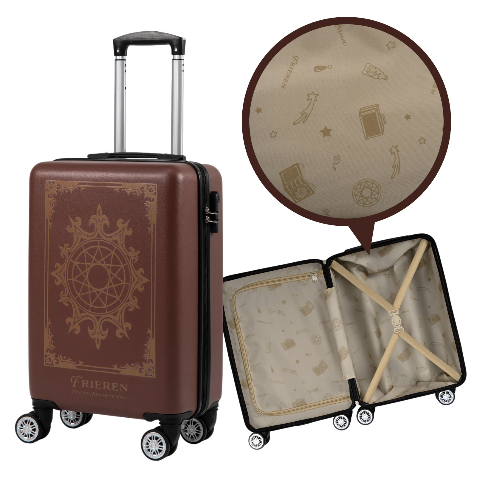《葬送的芙莉蓮》推出兩款福袋組合,A款的芙莉蓮和服掛軸加上頭戴式藍牙耳機,陪伴你生活中的一切起居大小事;B款的二合一兩用枕、寶箱怪行李吊牌與魔導書外觀的20吋耐刮登機箱,一手包辦你出國旅遊的所有需求。兩款福袋一起擁有,讓《葬送的芙莉蓮》成為你居家出遊的最佳夥伴。